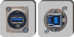 vorne USB 3.0 A-Buchse und hinten USB 3.0 B-Buchse