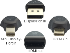 3in1 Adapter DP-Stecker + Mini DP-Stecker + USB-C Stecker / HDMI-Buchse